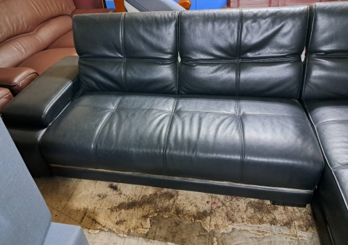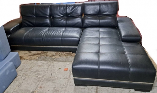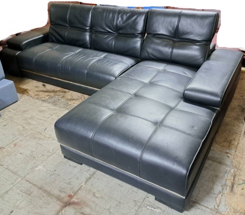 半牛皮.黑色.L型沙發 ( 左貴妃 )