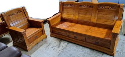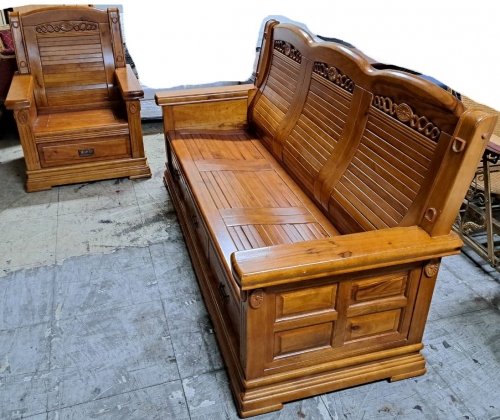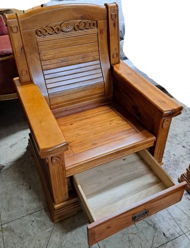 【賣】二手.客廳家具.樟木.木椅組 (抽屜款)