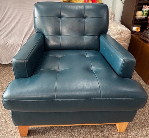 【賣】二手.全牛皮.深藍色.單人座.單人沙發