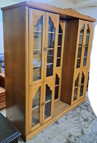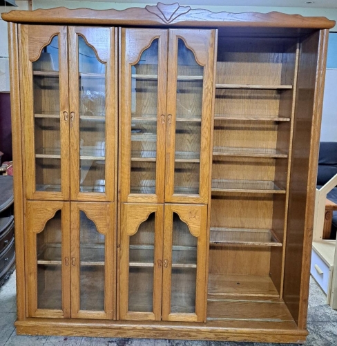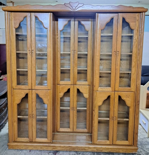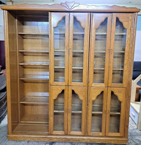 【賣】二手.半實木.滑門式.六尺.雙層書櫃.收納櫃.展示櫃