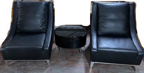 【賣】二手.半牛皮.黑色.洽談沙發組