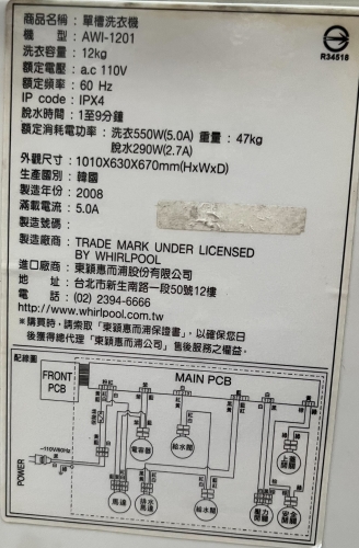 【型號】AWI-1201,2008年韓國製,定頻