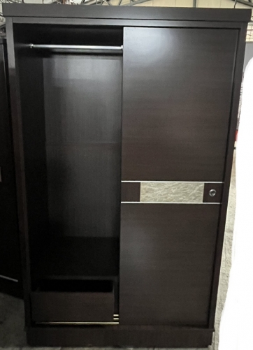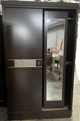 胡桃色.滑門式.四尺衣櫃 (附滑門儀容鏡)