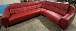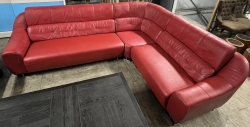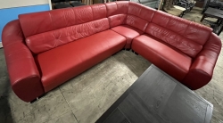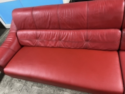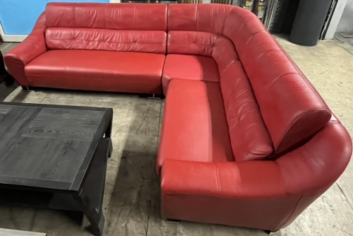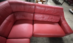【賣】二手.半牛皮.紅色.海灣型沙發.L型沙發
